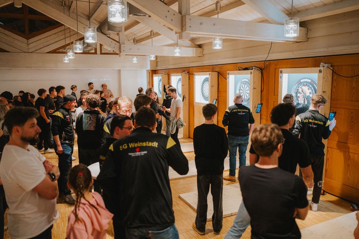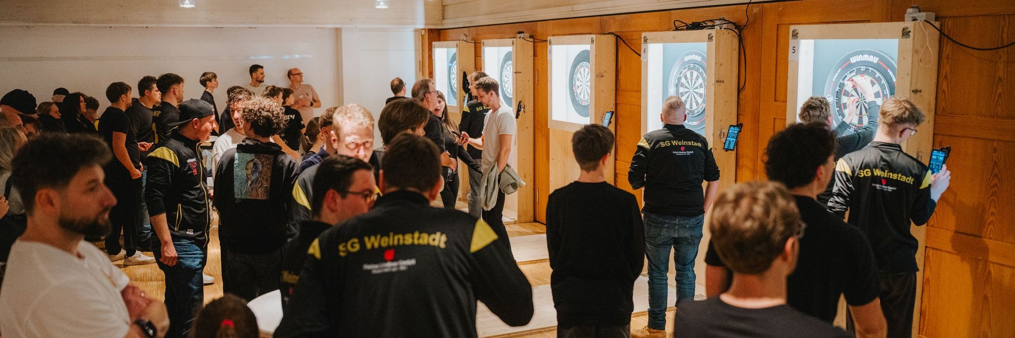 Am Freitag, den 23.01., richtete die vor rund einem Jahr gegründete Darts-Abteilung der SG Weinstadt e.V. erstmals eine vereinsinterne Weinstadt-Meisterschaft (WM) aus – und setzte dabei direkt ein Ausrufezeichen. Insgesamt 32 Doppelteams mit 64 Aktiven spielten in der Jahnhalle Endersbach zunächst eine Gruppenphase und anschließend eine K.-o.-Runde aus. Gespielt wurde auf acht mobilen Boards im Foyer und Nebenraum der Halle.