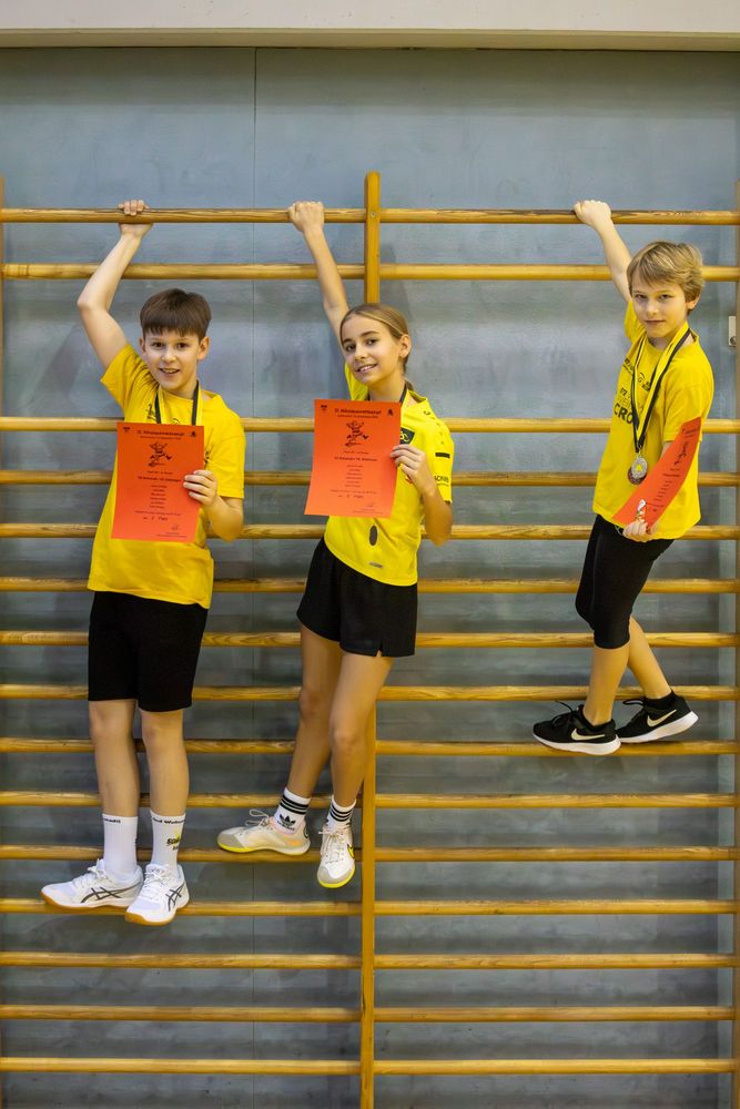 Die Jungs starteten beim Weitsprung, wo Lucas 3,39 m sprang und Bodo 3,30 m. Auch beim anschließenden 30 m Sprint waren die beiden mit ihren Zeiten (5,37 s und 5,41 s) vorne mit dabei. In der entscheidenden Disziplin, dem Medizinballstoßen, musste sich Lucas (8,00 m) gegen seinen starken Konkurrenten aus Schmiden geschlagen geben und landete auf Platz 4. Bodo hingegen konnte sich mit 7,00 m noch auf den 3. Rang vorschieben.
