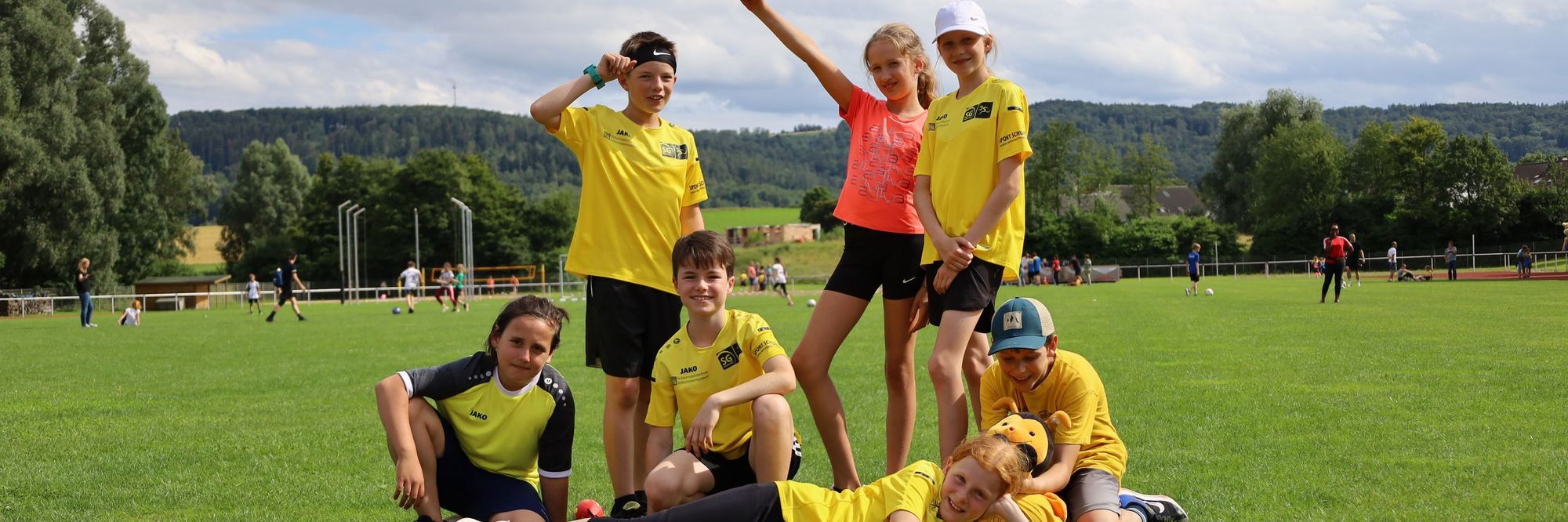 Die erste Disziplin war der Zonenweitsprung. Die weitesten Sprünge zeigten Paul und Anton, die es zuverlässig in die 14. Zone schafften. Weiter ging es mit dem Sprint über 50m. Schnellster Weinstädter war hier Paul mit einer Zeit von 7,7s. Danach folgte mit dem Stabwurf die erste Wurfdisziplin. Hier sammelten die Weinstädter weiter fleißig Punkt, den weitesten Wurf gelang dabei Yannik. In einer tollen Gemeinschaftsleistung blieb das Team in der anschließenden Hindernis-Staffel dem Team aus Schorndorf dicht auf den Fersen und sammelten 119 Punkte. Abschließende Disziplin war der Drehwurf, hier zeigten Paul und Lucas die weitesten Würfe.